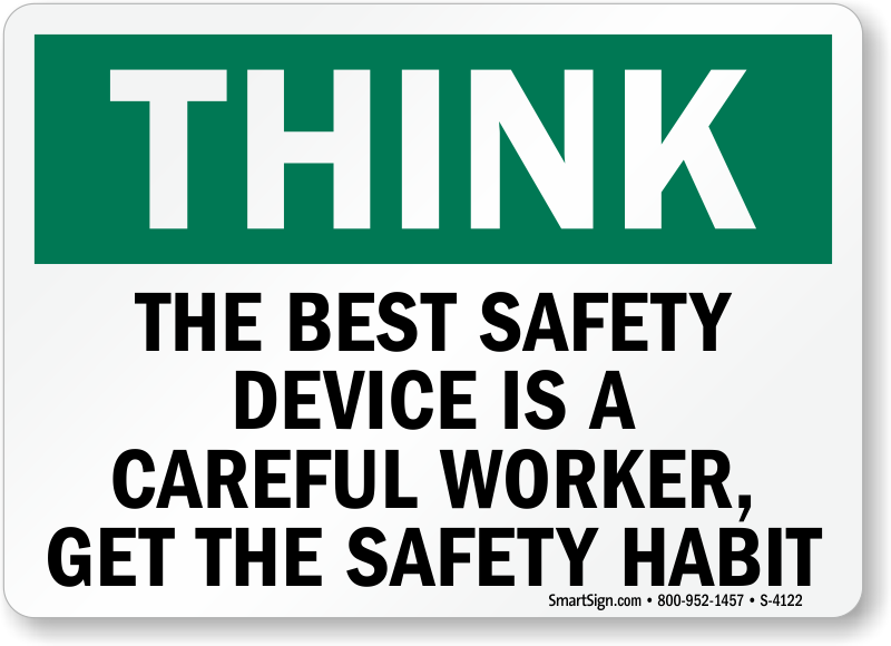 Use a "the best safety device is a careful worker, get the safety habit" sign.