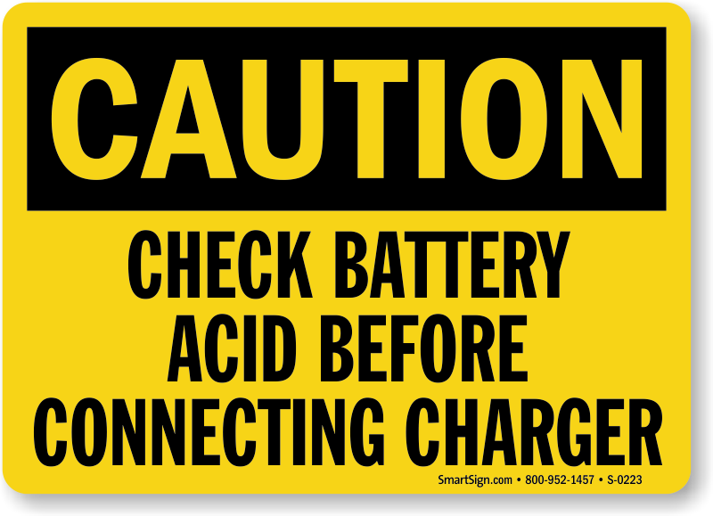 Stop dangerous situations. Use a "check battery acid before connecting charger" sign.