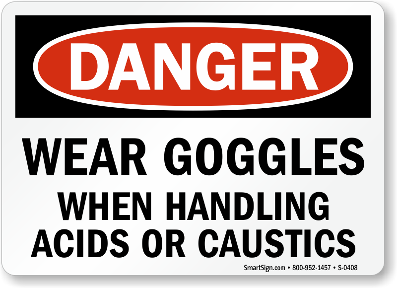 Use a "wear goggles when handling acids or caustics" sign.