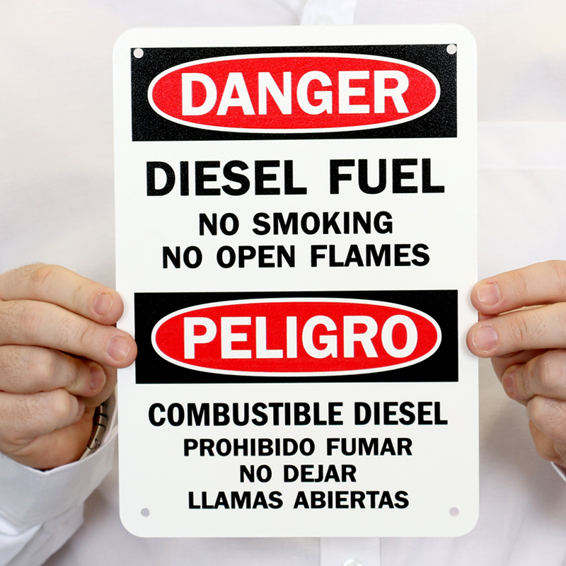 Use a "diesel fuel no smoking no open flames" sign. Influence decision making.