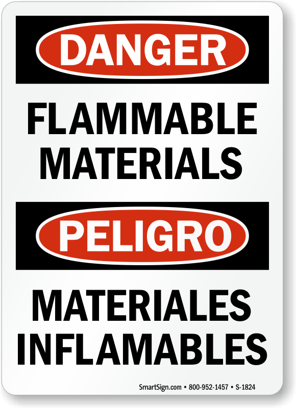 Bilingual Danger / Peligro OSHA Sign: Flammable Materials / Materiales Inflamables