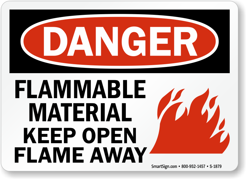 Use a "flammable material keep open flame away (with graphic)" sign.