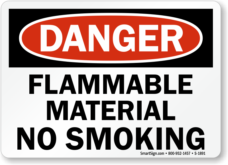 Make your words count! Use a "flammable material no smoking" sign. Make your point in an easy an consistent way.