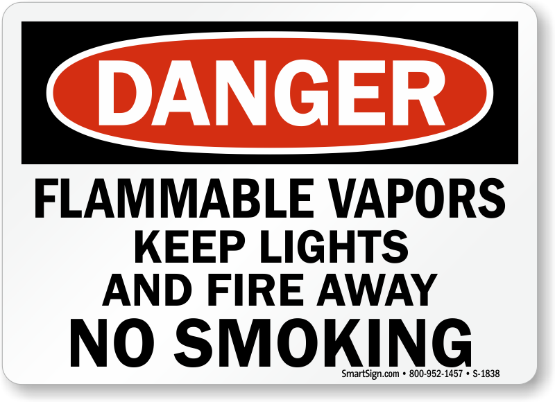 Remind workers and guests about the rules. Use a "flammable vapors keep lights and fire away no smoking" sign.