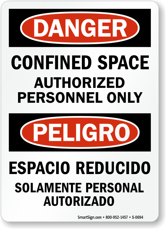 Restrict unauthorized people from entering confined space in your facility. A bilingual sign conveys your message in English and Spanish and helps you reach a broader audience. A Danger sign shows you care about safety and wellbeing of your employees, visitors, and patrons.