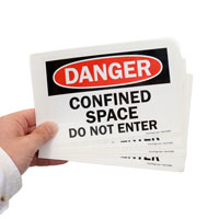 Mark confined spaces to prevent untrained personnel from entering such spaces and prevent accidents. Message is not only compliant with OSHA regulations, it also reinforces the value of safe work operation. Install this sign easily using the pre-drilled holes.