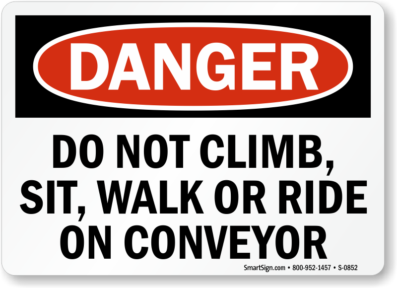 Designate hazardous spaces. Use a "do not climb, sit, walk or ride on conveyor" sign.