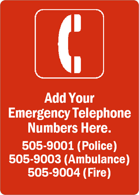 Use our Emergency Telephone Contact Signs to provide clear, concise information in an emergency. Compliant with many state and local regulations for swimming pools.