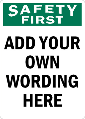 Custom OSHA Safety First Sign: Add Your Own Wording Here