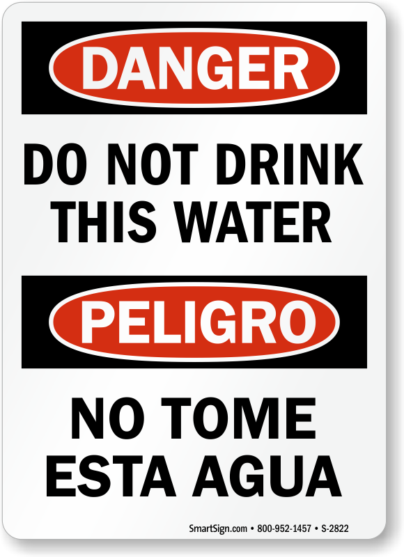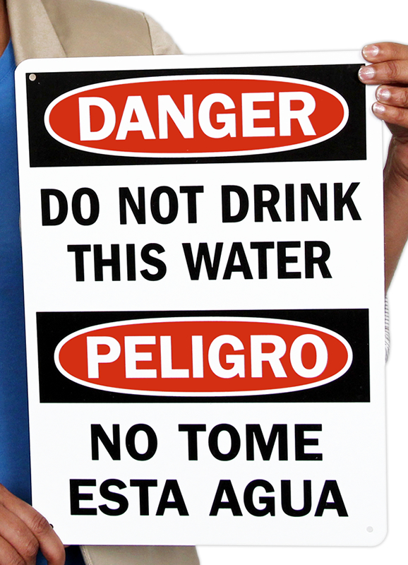 Do not let anyone consume contaminated water. This Bilingual OSHA Danger Sign effectively warns everyone against imminent danger.