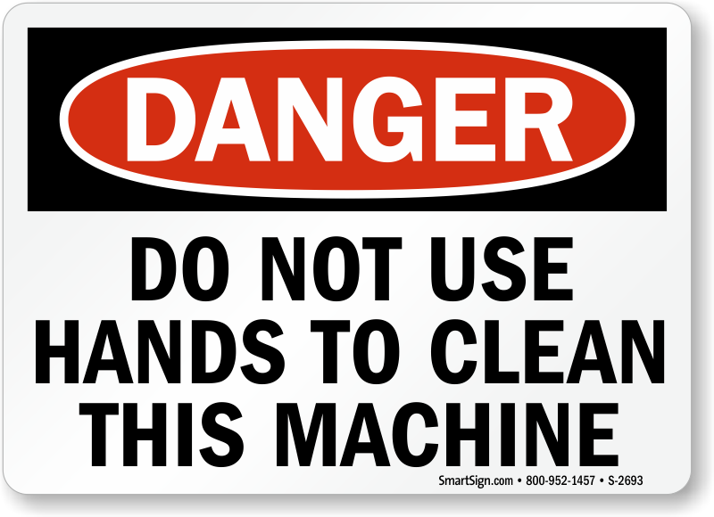 Use a "do not use hands to clean this machine" sign.
