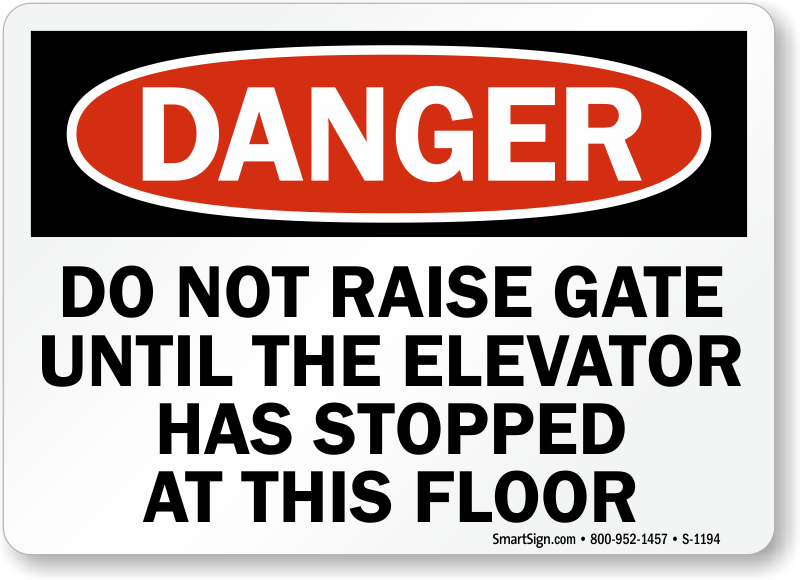 Remind everyone to be safe. Use a "do not raise gate until the elevator has stopped at this floor" sign.