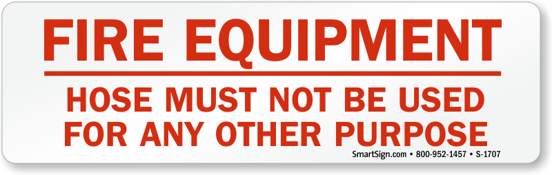 Make sure that you are prepared for an emergency. Use a "fire equipment hose must not be used for any other purpose" sign. Signs work - they guard against carelessness.