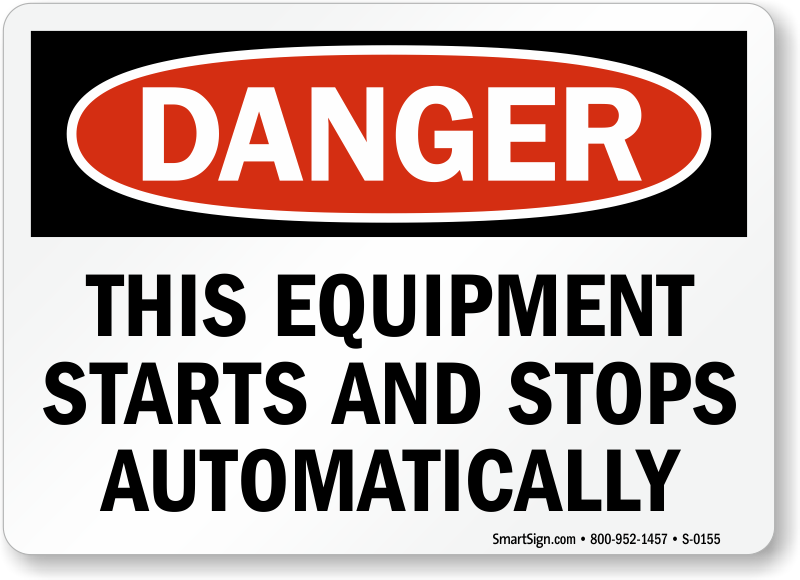 If equipment starts and stops automatically, keep all workers informed by installing this sign. Clear and simple message effectively communicates your message across. Bold DANGER header is visible from afar and increases the visibility of the sign.