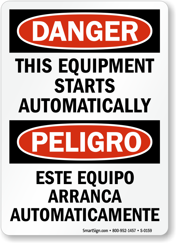 Bilingual OSHA Danger / Peligro Sign: This Equipment Starts Automatically / Este Equipo Arranca Automaticamente