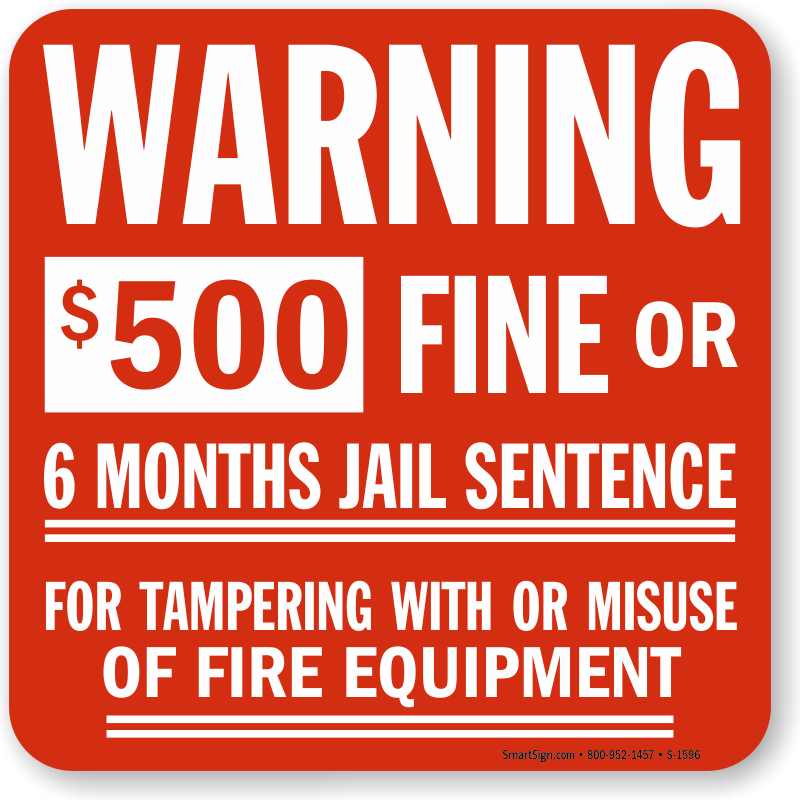 Fire safety is important. Use a "warning $500 fine or 6 months jail sentence for tampering with or misuse of fire equipment" sign. A sign helps underscore the value of safety.