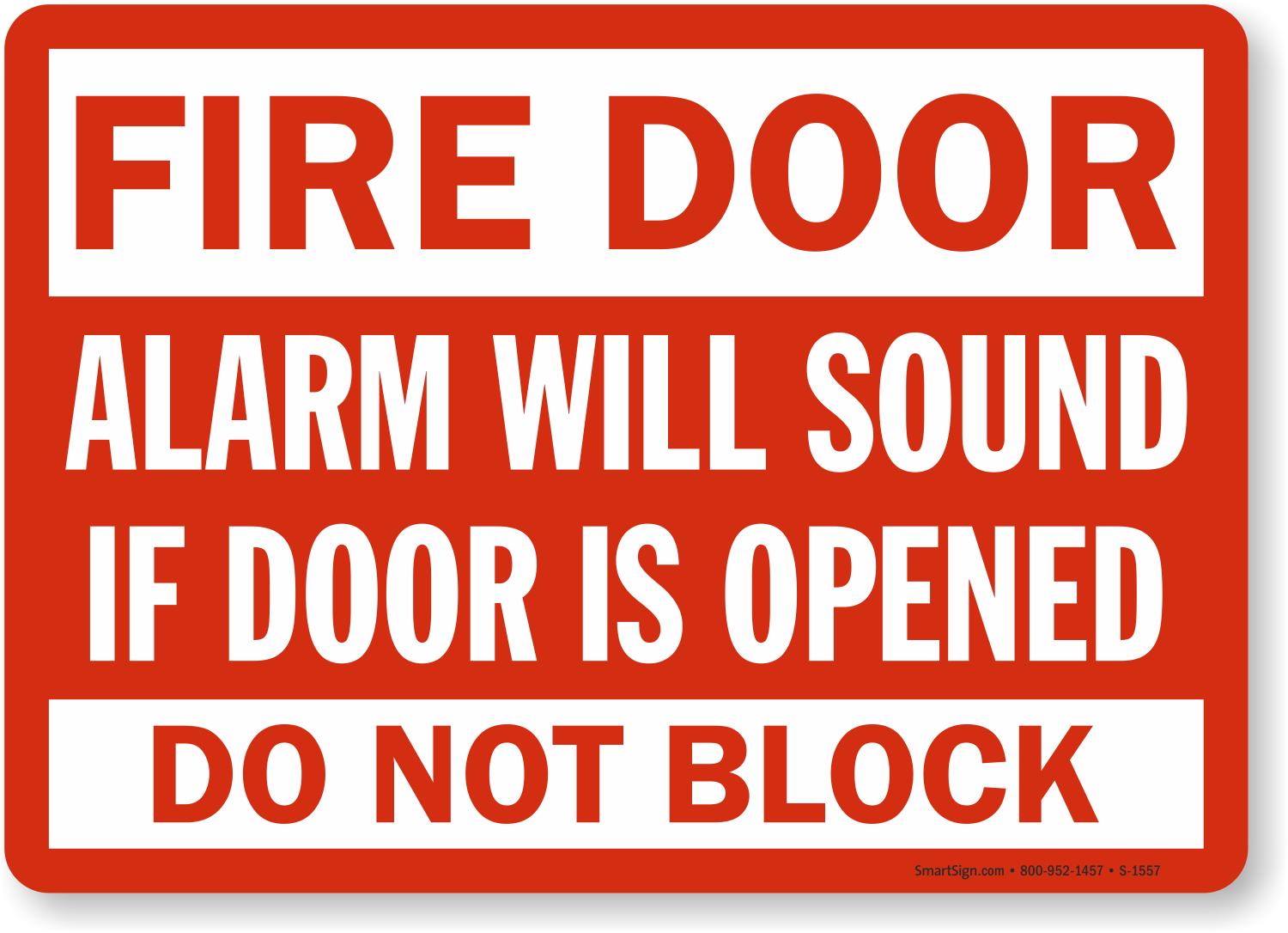 Make sure that your building meets fire safety codes. Use a "fire door alarm will sound if door is opened do not block" sign. Keep your building properly equipped.