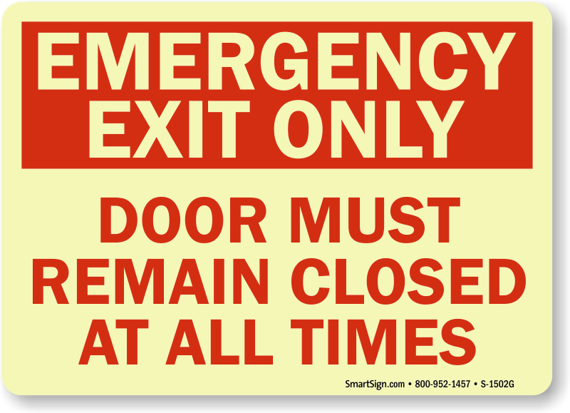 Don't be caught unprepared in a fire emergency. Use a "emergency exit only door must remain closed at all times" sign. Signs make an important point.