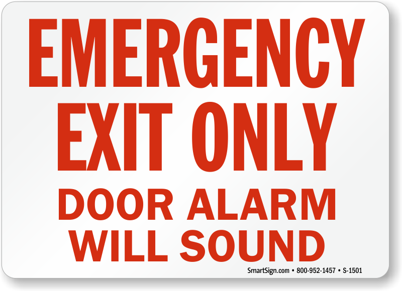 In an emergency, fire safety signs are critically important. Use a "emergency exit only door alarm will sound" sign. You won't need it everyday, but will be glad you have it when the time comes.