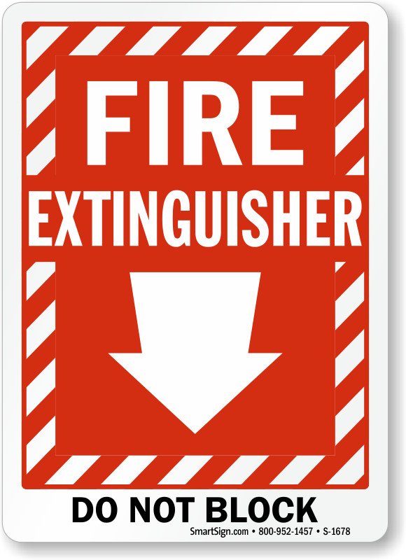 Give people the tools they need to save lives in an emergecy. Use a "fire extinguisher do not block " sign. Don't ignore emergency equipment.