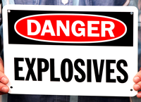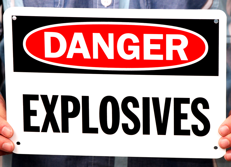 This charged explosive sign is available in multiple sizes and grades to suit your individual needs.