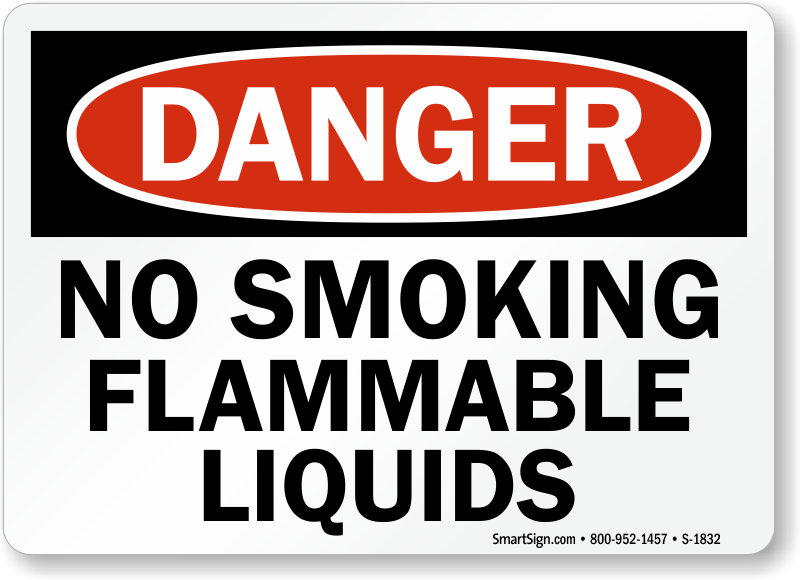 Use a "no smoking flammable liquids" sign. Reinforce the value of avoiding accidents.