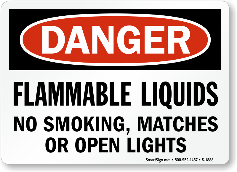 Use a "flammable liquids no smoking, matches or open lights" sign. Underline the value of avoiding accidents.