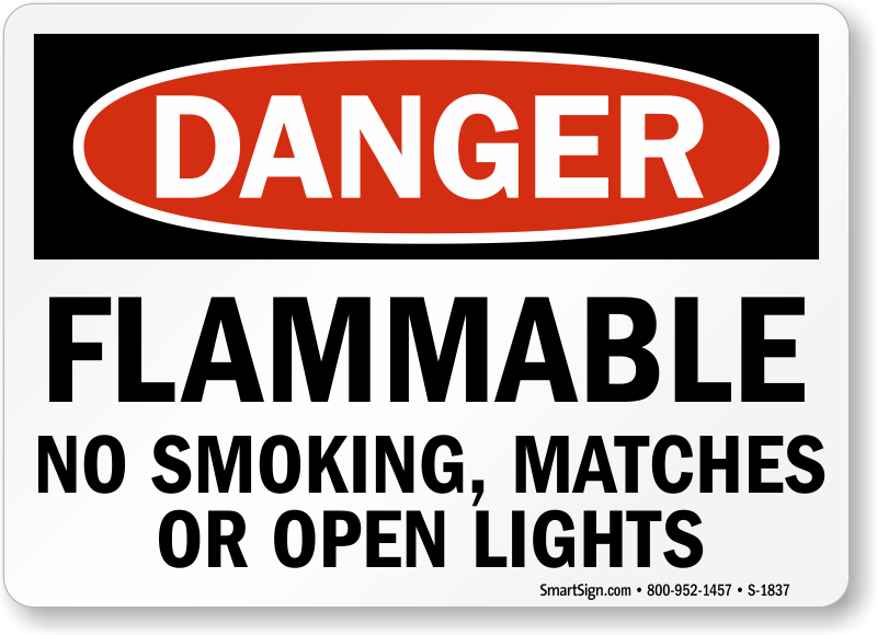 Use a "flammable no smoking, matches or open lights" sign. Underline the value of safety.