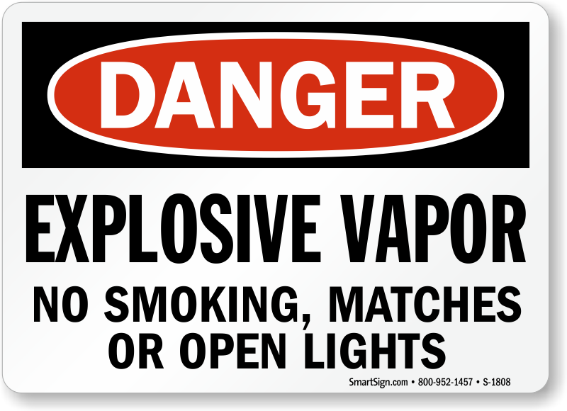OSHA Danger Sign: Explosive Vapor No Smoking, Matches Or Open Lights S-1808