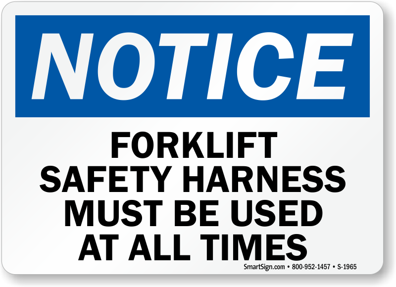 OSHA Notice Sign: Forklift Safety Harness Must Be Used At All Times S-1965