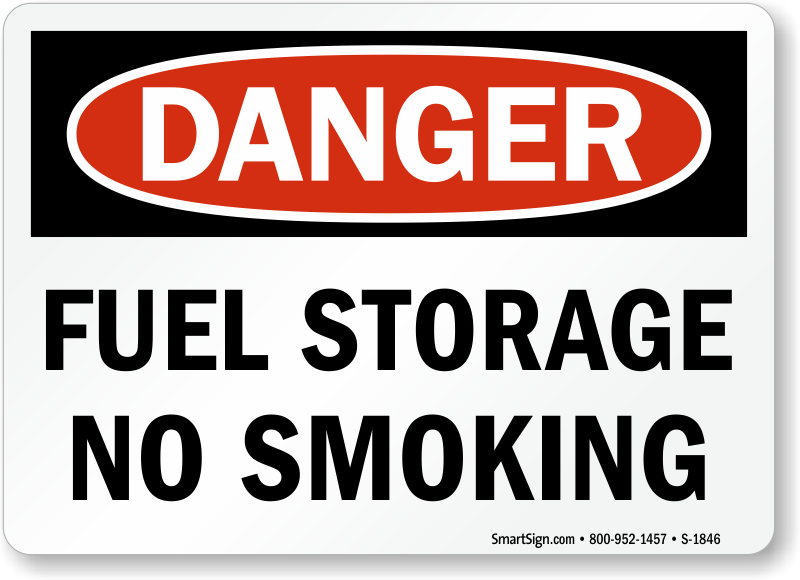 This danger sign announces storage and keeps people from lighting up around fuel.