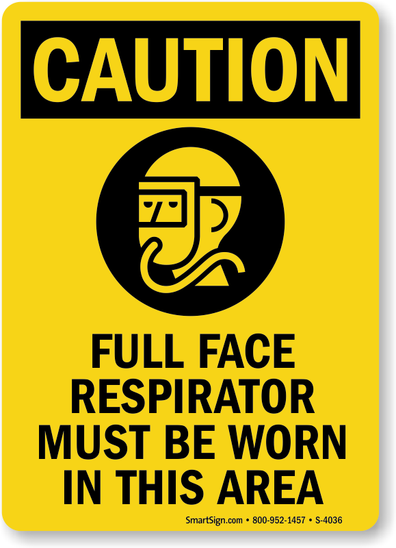 Use a "full face respirator must be worn in this area (with graphic)" sign.