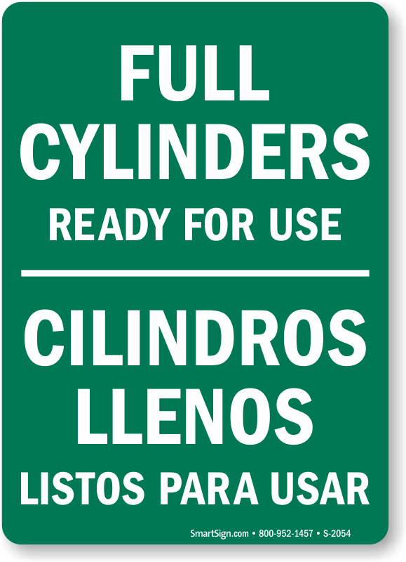 Use a "full cylinders ready for use (bilingual)" sign.