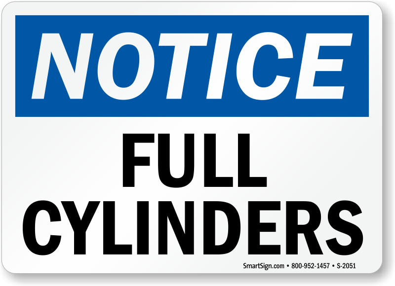 Use a "full cylinders" sign to remind your employees that safety is a serious business.