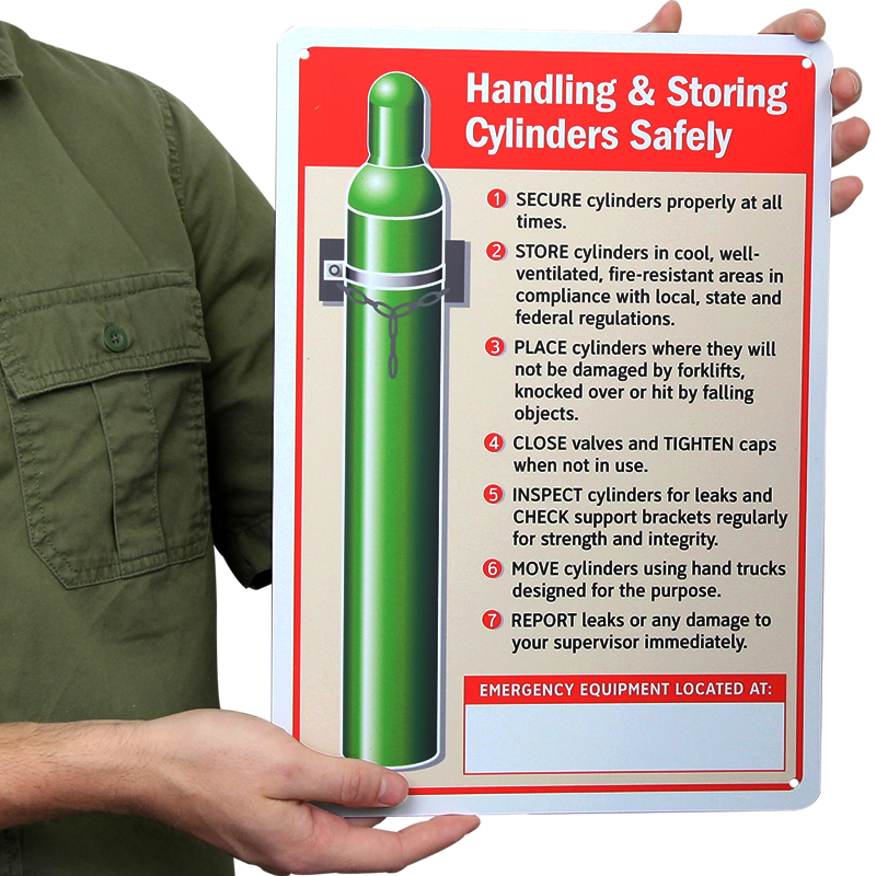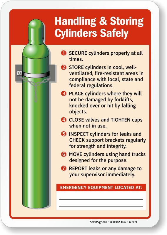Use a "safe cylinder handling instructions" sign. Make sure your gas cylinders are properly stored.