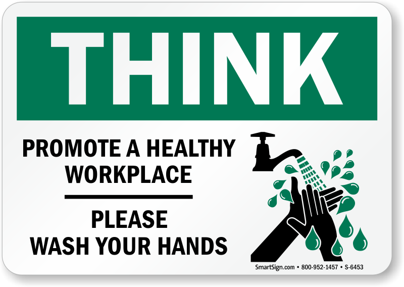 Remind your employees to think before they act. You can prevent the spread of sickness with an attention-grabbing sign!