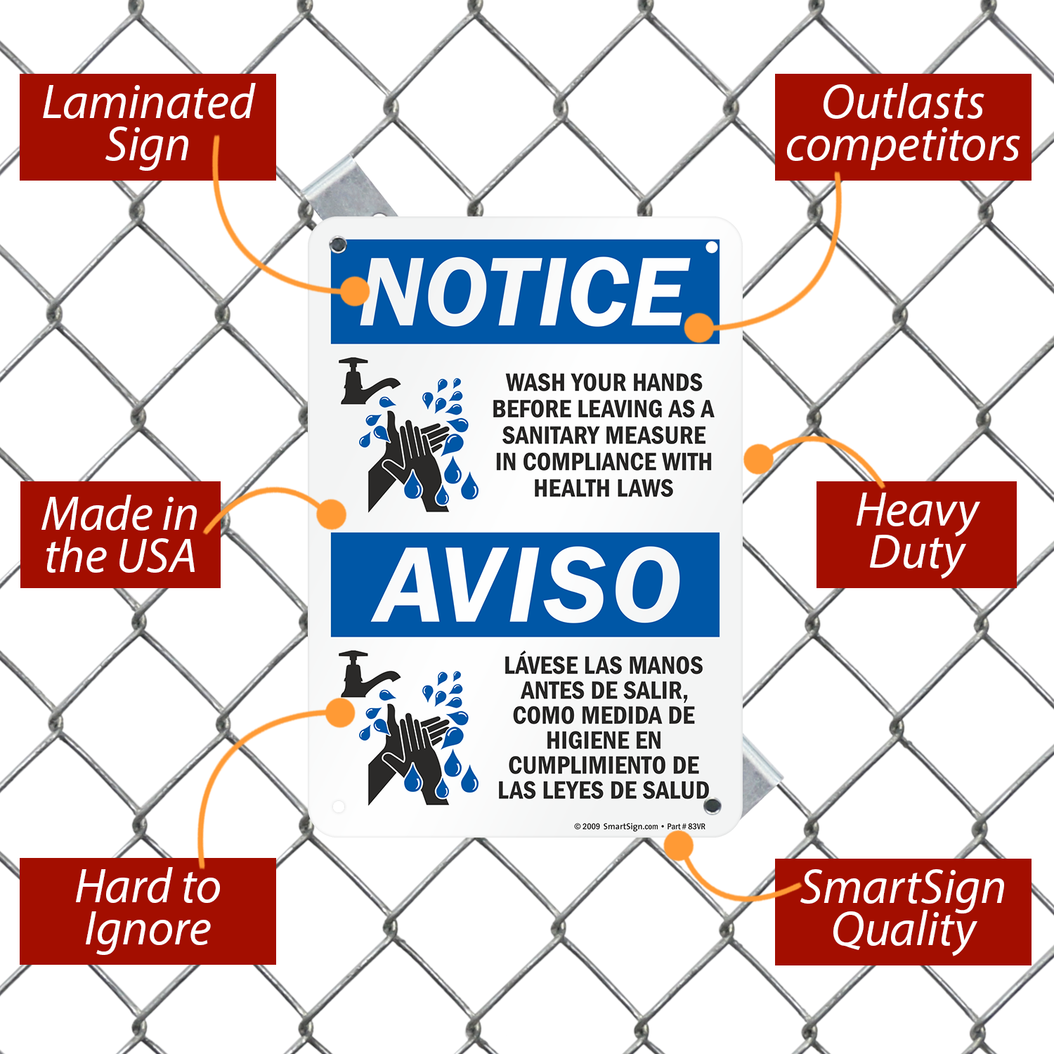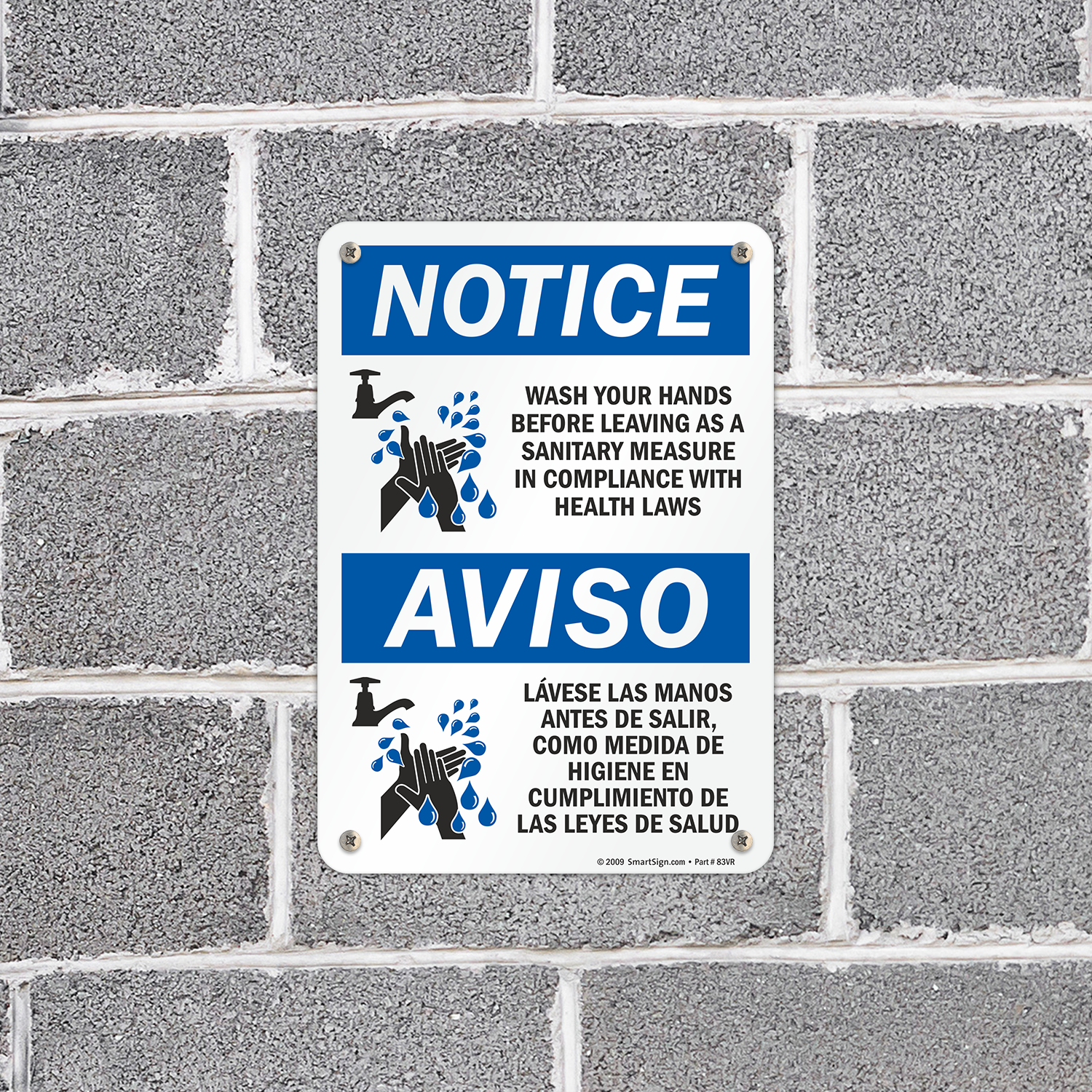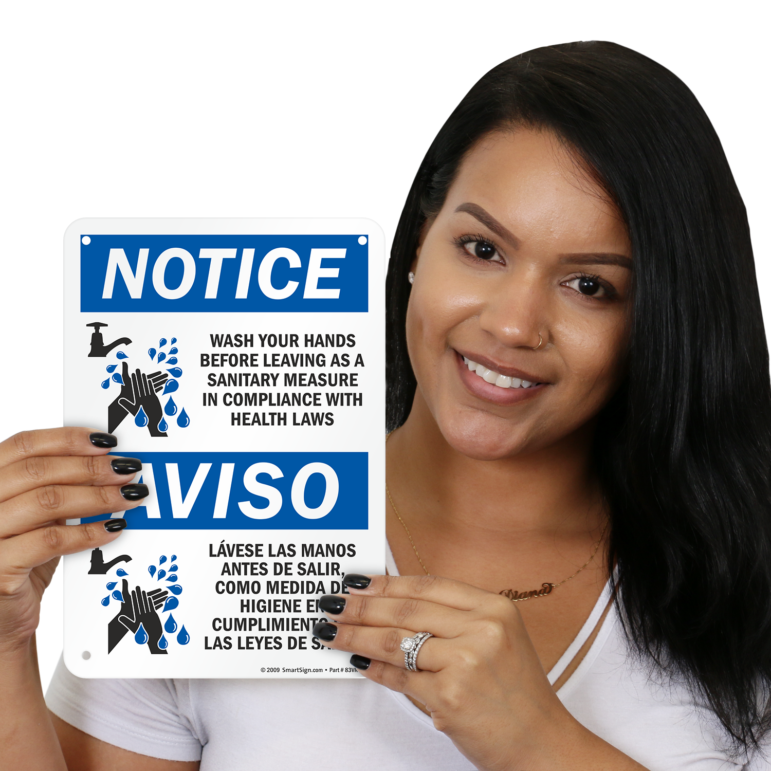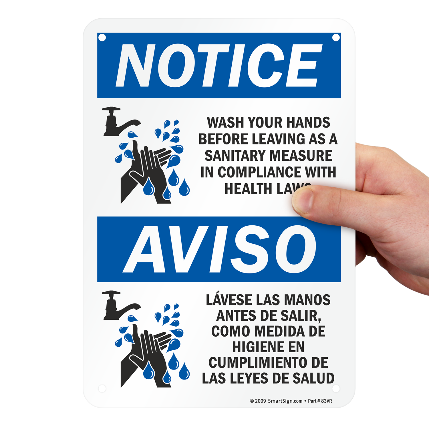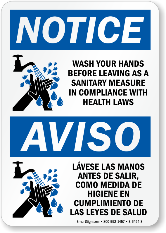Let everyone know the importance of hand washing with a great bilingual sign. This black-and-blue sign reaches out to a bigger audience, so everyone can help prevent the spread of illness!