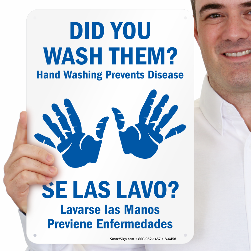 Get a bilingual hand washing message that asks a simple question. This handwashing sign is a great reminder that can be mounted almost anywhere.