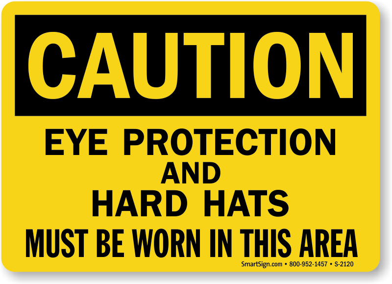 OSHA Caution Sign: Eye Protection and Hard Hats Must Be Worn In This Area