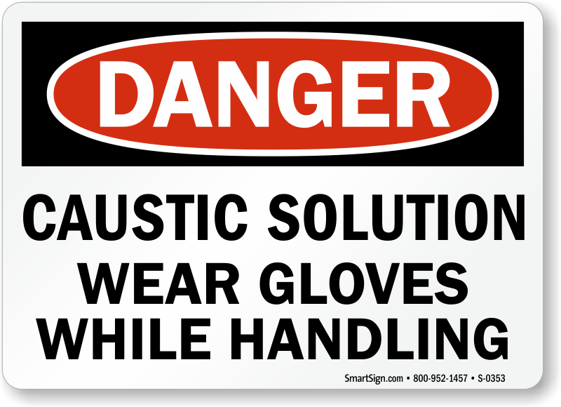 Stop chemical exposure. Use a "caustic solution wear gloves while handling" sign.