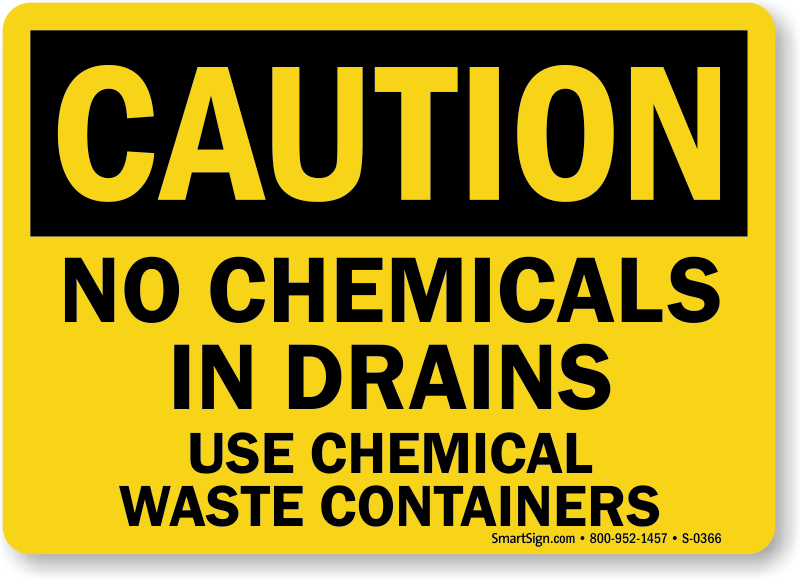 Comply with legal requirements. Use a "no chemicals in drains use chemical waste containers" sign.
