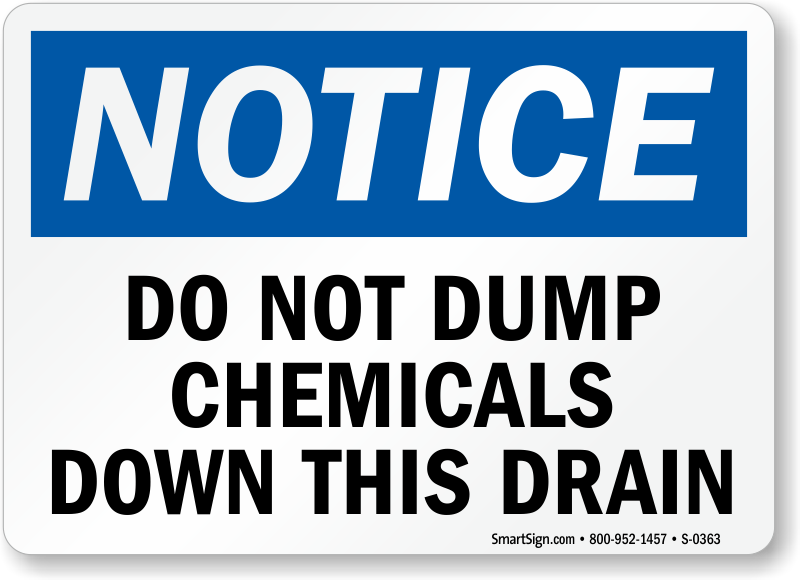 Use a "do not dump chemicals down this drain" sign. A classic tool for making a point.
