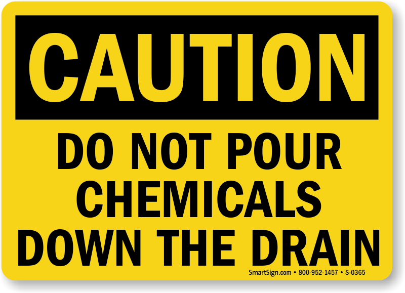 Use a "do not pour chemicals down the drain" sign.