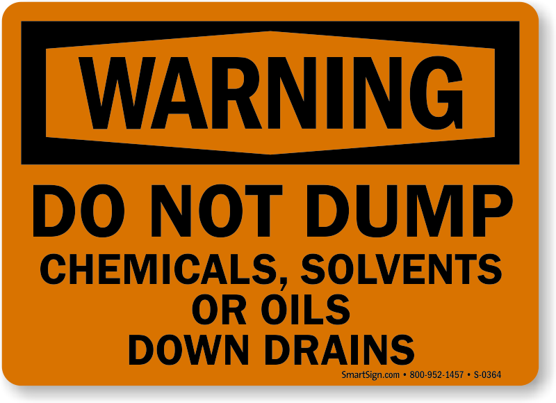 Control chemical hazards. Use a "do not dump chemicals, solvents or oils down drains" sign.