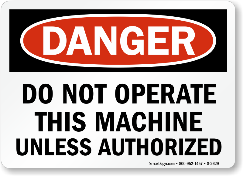 Use a "do not operate this machine unless authorized" sign. Demonstrate your commitment to avoiding accidents.