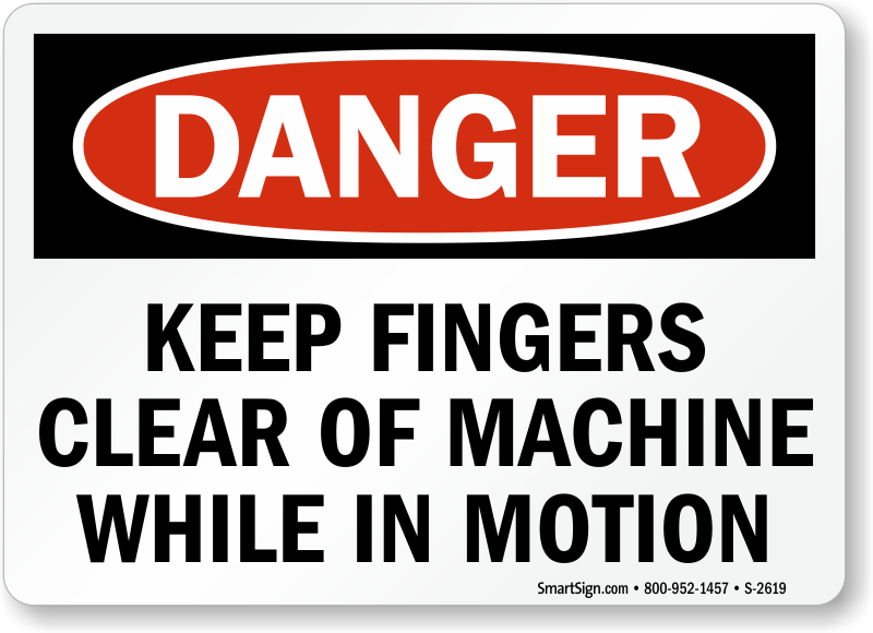 OSHA Danger Sign: Keep Fingers Clear Of Machine While In Motion S-2619
