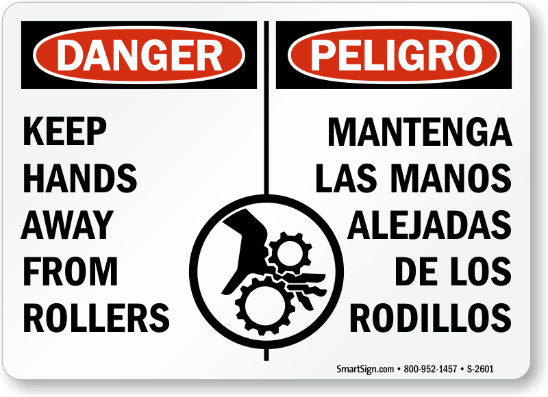 Bilingual OSHA Danger / Peligro Sign: Keep Hands Away From Rollers / Mantenga Las Manos Alejadas De Los Rodillos