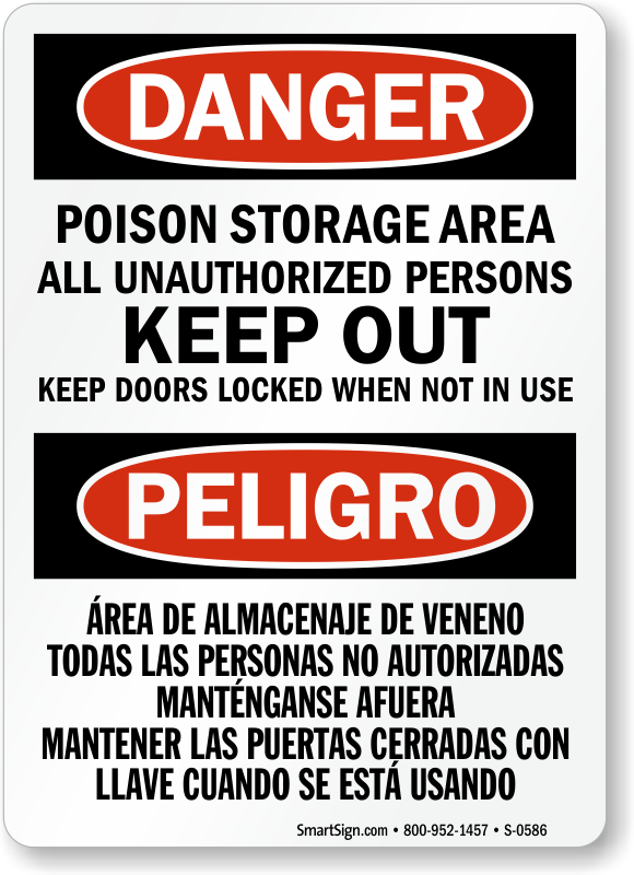 A bilingual sign keeps both English and Spanish speakers away from poisonous areas.