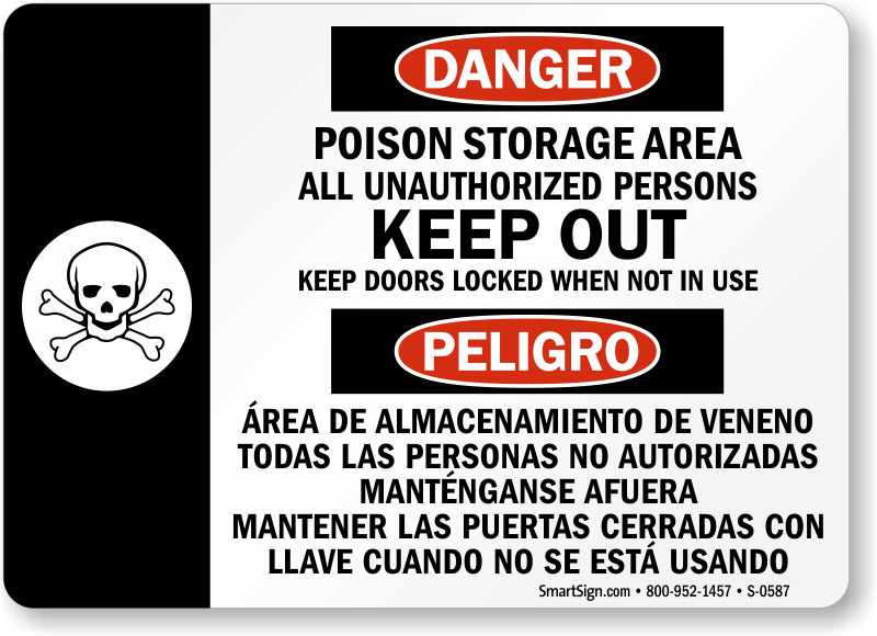 Universally communicate important safety messages. Use bilingual signs so everyone knows about poison storage areas in your facility.