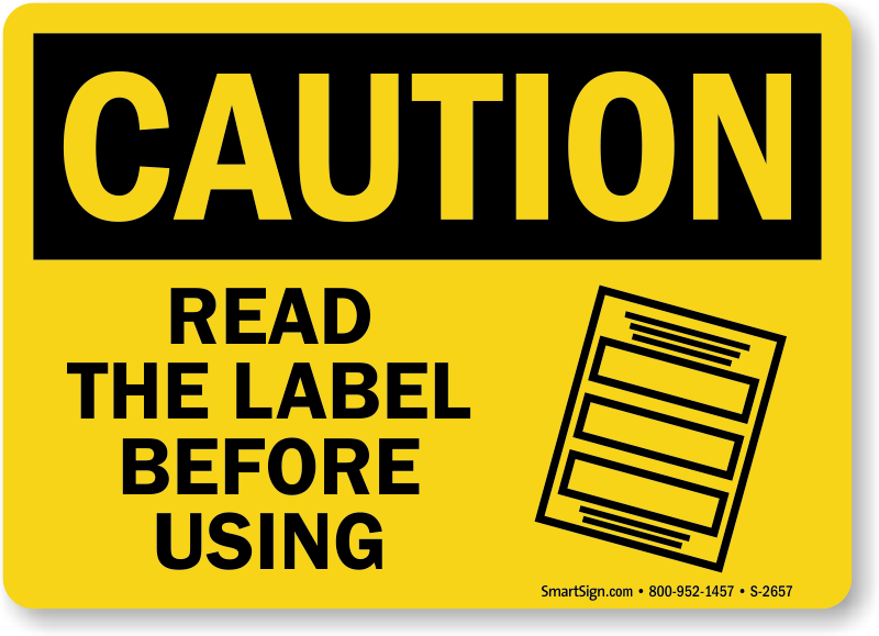 OSHA Caution Sign: Read The Label Before Using (with graphic) S-2657